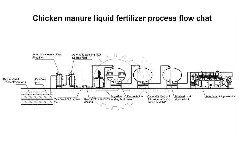 A standard liquid fertilizer production line using poultry manure generally includes: